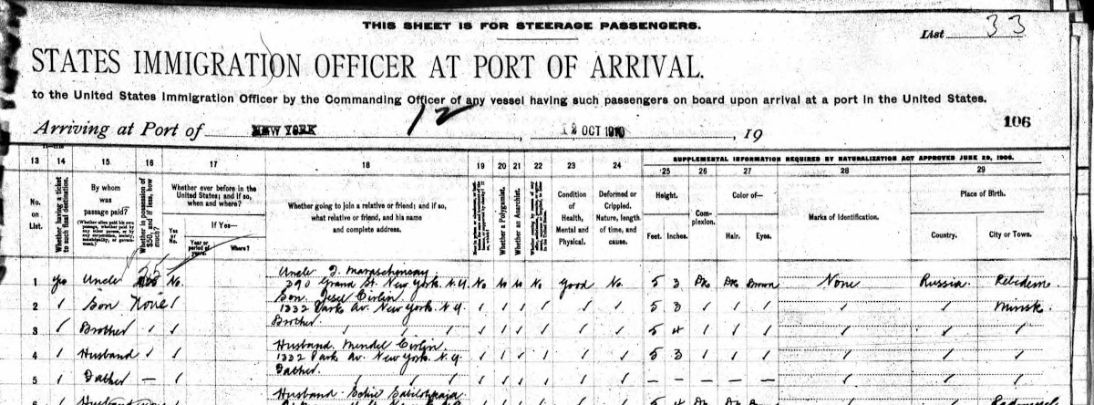 Cirlin Abraham 15 m s Laborer Russia Hebrew Minsk New York brother