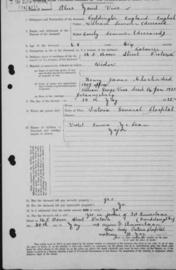 Alice Maud Cherlin Vine, neé Lemmer
