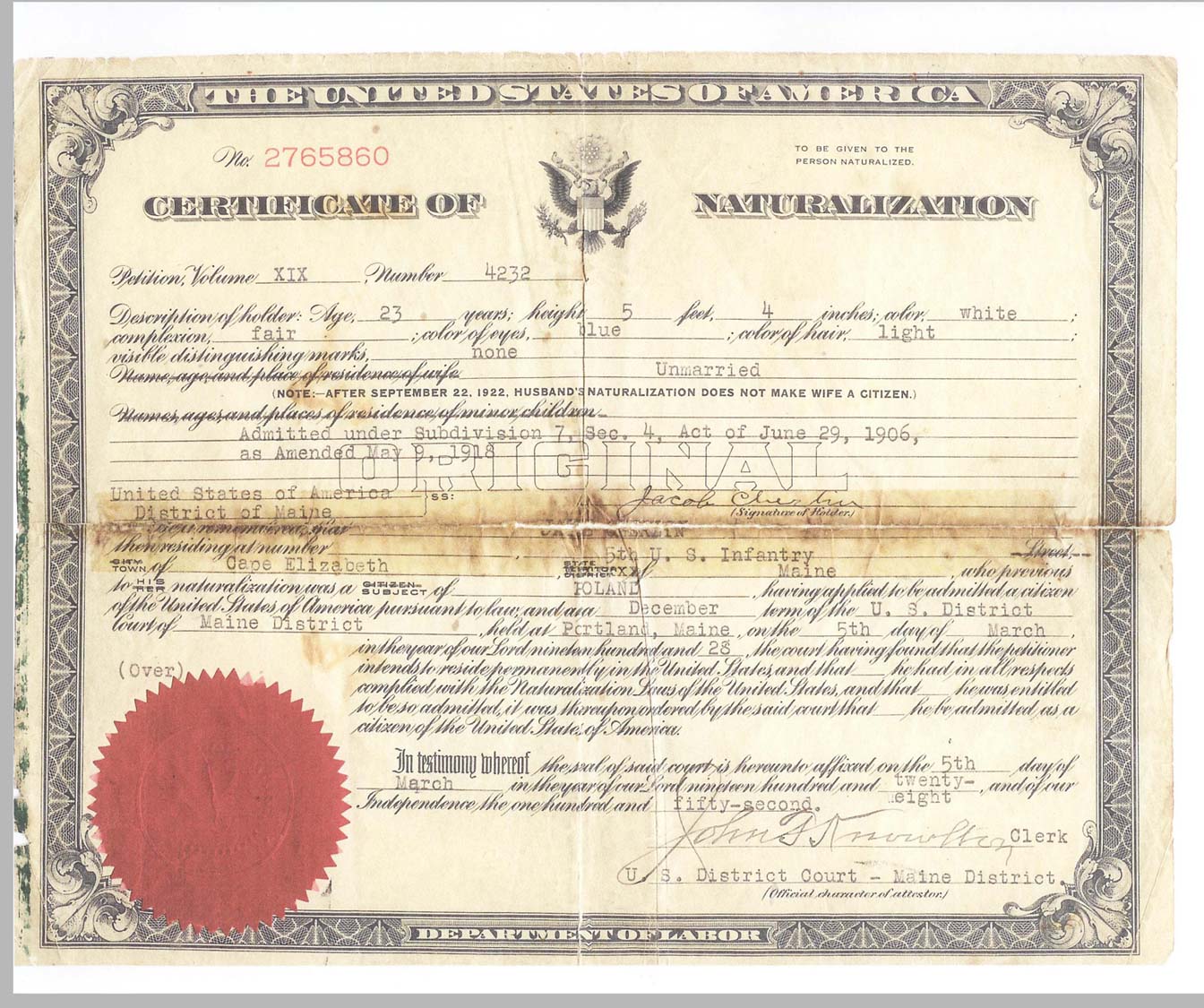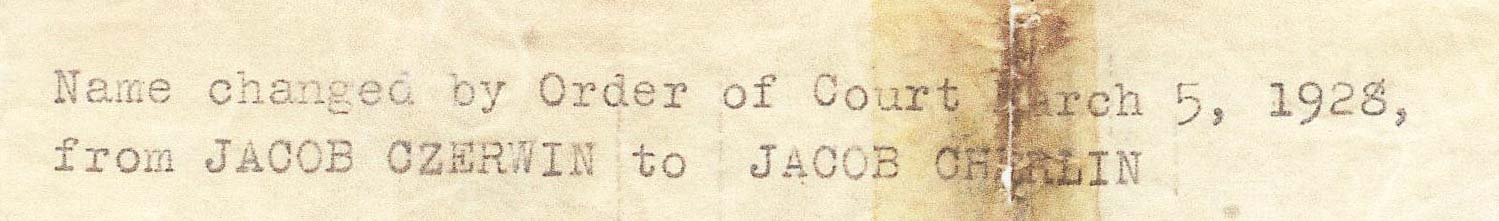 On the back, the name change recorded. Jack and Sam both entered at Ellis Island as Czerwin. Later Sam changed the name, and Jack followed suit.