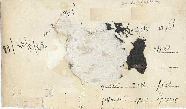 Source: From Ruth Oretskin, via Stew Cherlin, March 2003. Apparently this was sent from young Jack to Isaac Cramer.